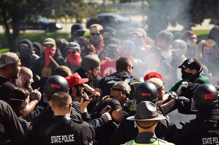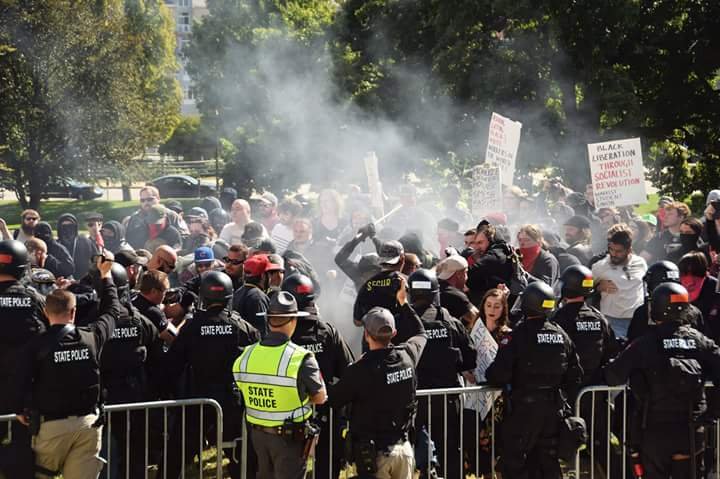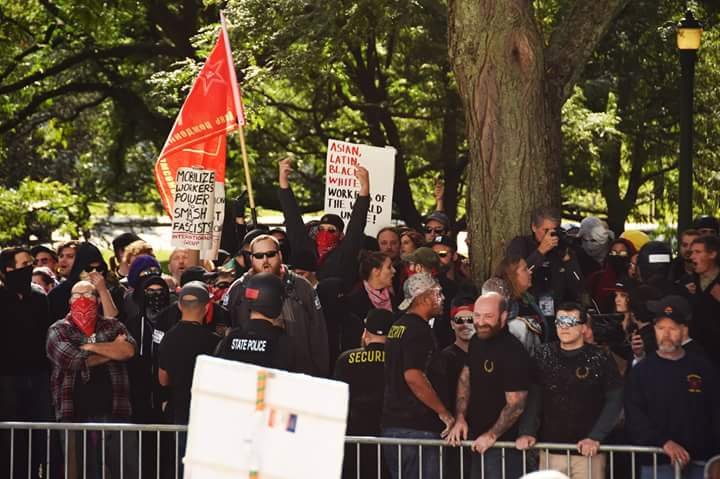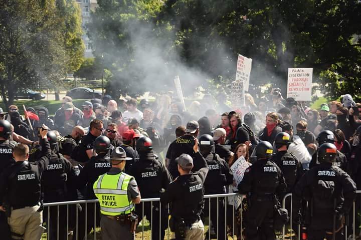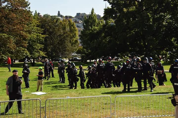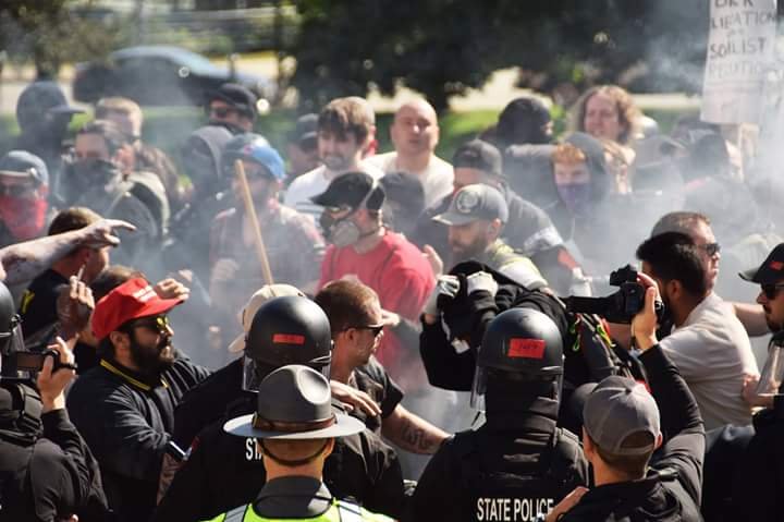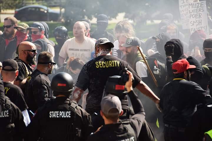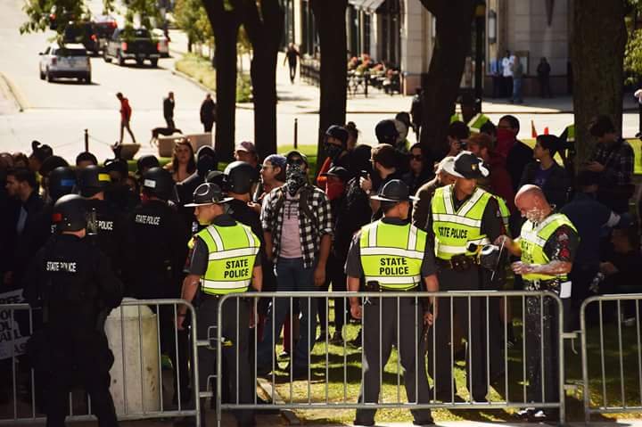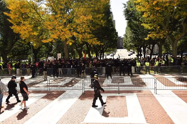 A coalition of patriots including The American Guard from Rhode Island, Massachusetts, and New Hampshire, Proud Boys, Patriot Prayer, and Resist Marxism faced an unruly mob, eventually brawling degenerate scum in a few incidents due to a lackluster effort by law enforcement to secure anyone’s rights.